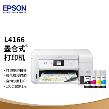 愛普生(EPSON)墨倉式品質(zhì)款L4166(優(yōu)雅白) 微信打印/無線連接 打印復(fù)印掃描一體機(jī)