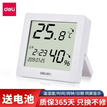 得力(deli) 8813 溫度計家用室內(nèi)嬰兒房高精度電子溫濕度計電子鬧鐘 白色