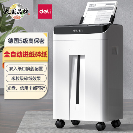 得力 deli 德國5級高保密 全自動碎紙辦公家用文件粉碎機(jī) 雙入紙口 自動進(jìn)紙 2m/min高速碎紙 14500