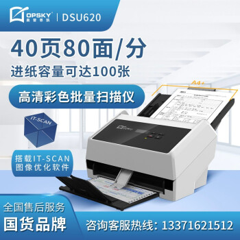 奧普思凱(OPSKY) 饋紙式掃描儀高清彩色雙面連續(xù)大容量自動進(jìn)紙辦公設(shè)備發(fā)票文檔多介質(zhì)掃描 DSU620 掃描儀(40頁80面/分鐘)